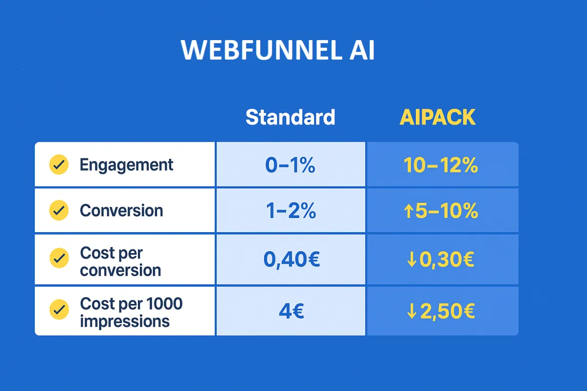 👉 Rezultat: prin integrarea AI, webfunnelul răspunde instant, personalizează interacțiunile și crește automat conversia.